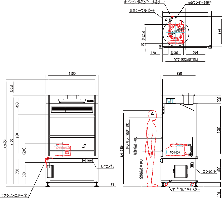 | 外径寸法 | 1200W×850D×2100H(㎜) 前面扉開時2465H(㎜) |