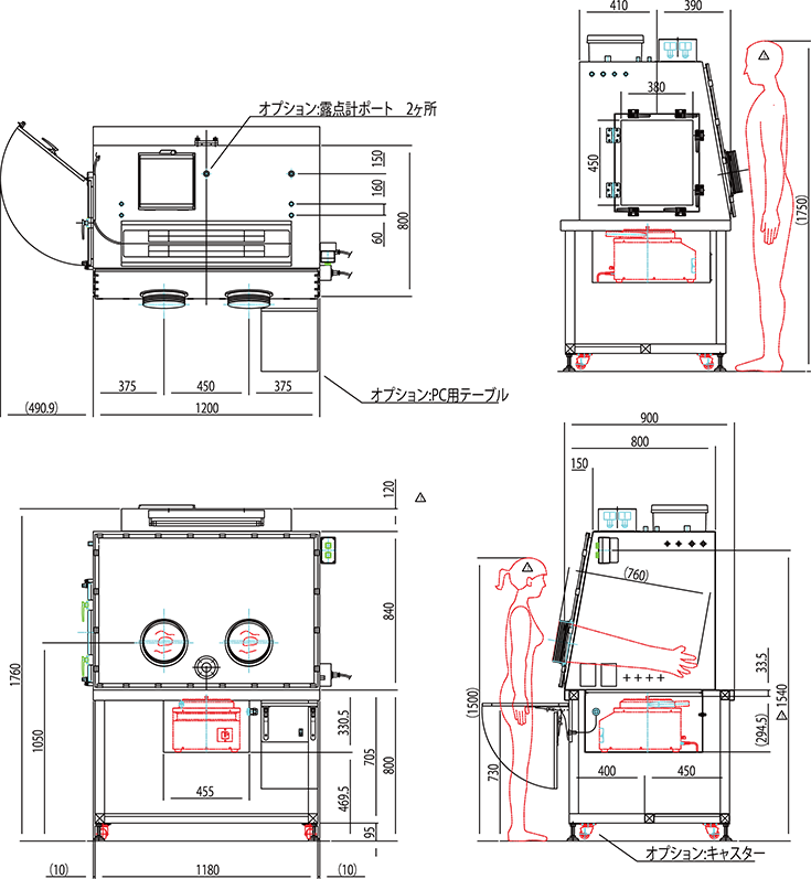 | 外径寸法 | 1200W×900D×1760H(㎜) 側面扉開時約1700W(㎜) |