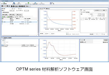 | 解析 | 最小二乗法、最適化法、周期解析(FFT)、ピークバレイ法(PV)、基板解析 裏面反射補正、各種光学定数(nk)解析モデル式、グラフ表示(等高線/3D) 絶対反射率/解析結果フィッティング/光学定数(nk)の波長依存性 複数点解析 |